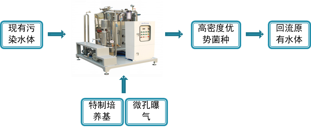 (2)目前使用拋灑種菌劑的方法相比,具有有效微生物數(shù)量多、微生物活性強、不必保存菌種、運行費用更低等優(yōu)點。